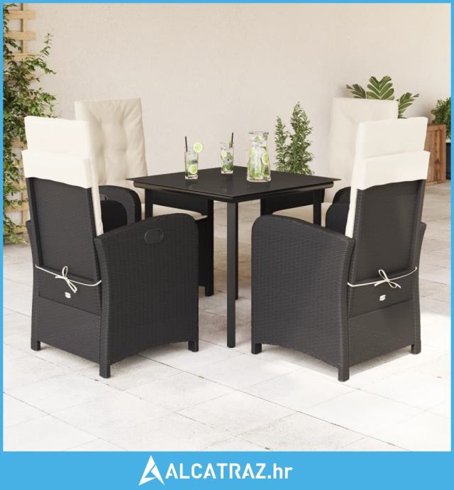 5-dijelni vrtni blagovaonski set s jastucima od poliratana crni - NOVO