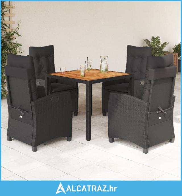5-dijelni vrtni blagovaonski set s jastucima od poliratana crni - NOVO