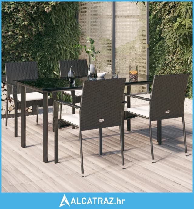 5-dijelni vrtni blagovaonski set s jastucima od poliratana crni - NOVO