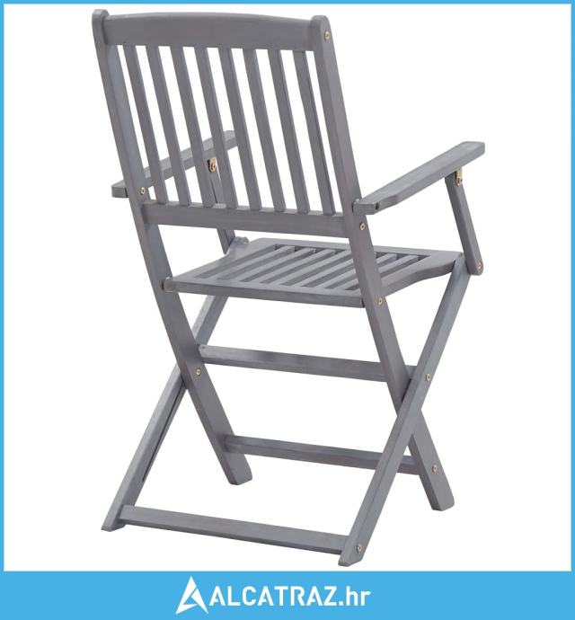 I stol i stolice napravljeni su od masivnog bagremovog drva premazanog sivom izbijeljenom bojom. Stoga su otporni na vremenske utjecaje, izdržljivi i lako se čiste vlažnom krpom. Zbog stabilne drvene konstrukcije, ovaj je set vrlo stabilan i siguran. Uz to, pružit će vam udobnost i veliku praktičnost za provođenje vremena s obitelji i prijateljima. Stolice se mogu jednostavno sklopiti za lako spremanje i transport kad se ne upotrebljavaju.