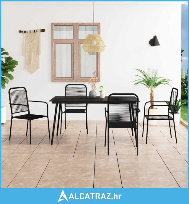 5-dijelni vrtni blagovaonski set pamučni konop i čelik crni - NOVO