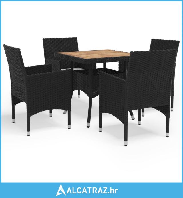 5-dijelni vrtni blagovaonski set poliratan i drvo bagrema crni - NOVO