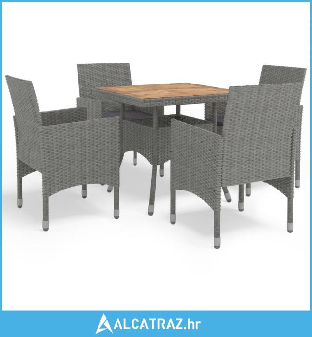 5-dijelni vrtni blagovaonski set poliratan i drvo bagrema sivi - NOVO