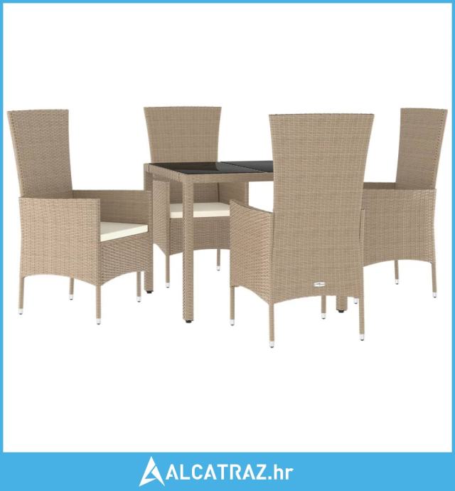 5-dijelni vrtni blagovaonski set od poliratana s jastucima bež - NOVO