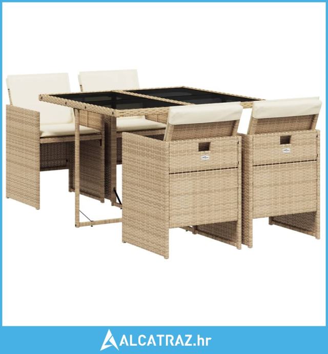 5-dijelni vrtni blagovaonski set od poliratana s jastucima bež - NOVO