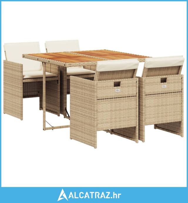 5-dijelni vrtni blagovaonski set od poliratana s jastucima bež - NOVO