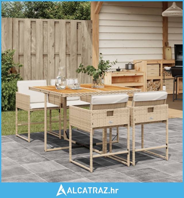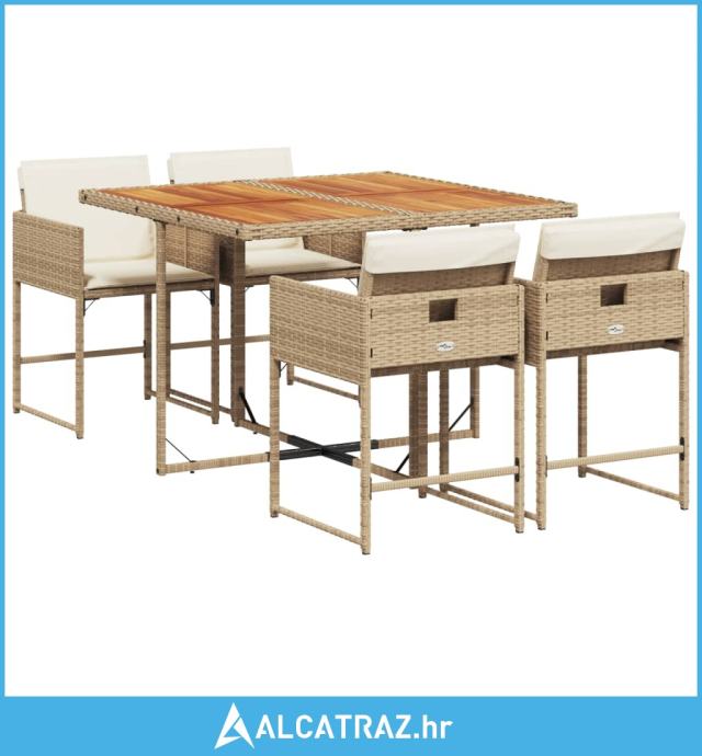 5-dijelni vrtni blagovaonski set od poliratana s jastucima bež - NOVO