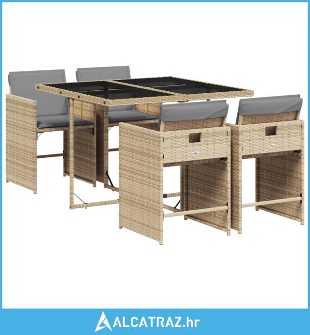 5-dijelni vrtni blagovaonski set od poliratana s jastucima bež - NOVO