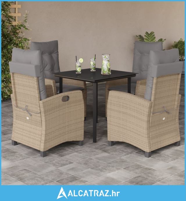 5-dijelni vrtni blagovaonski set od poliratana s jastucima bež - NOVO