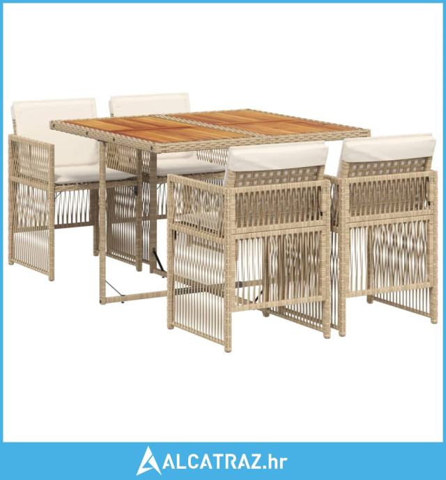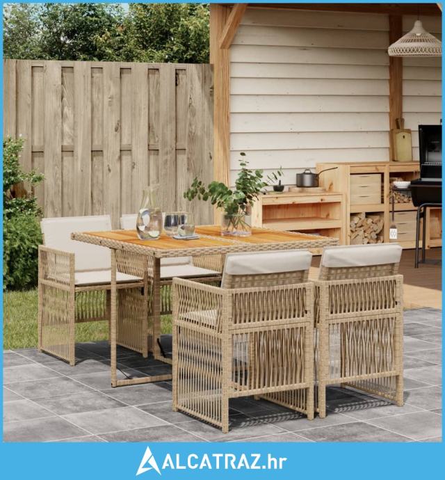 5-dijelni vrtni blagovaonski set od poliratana s jastucima bež - NOVO