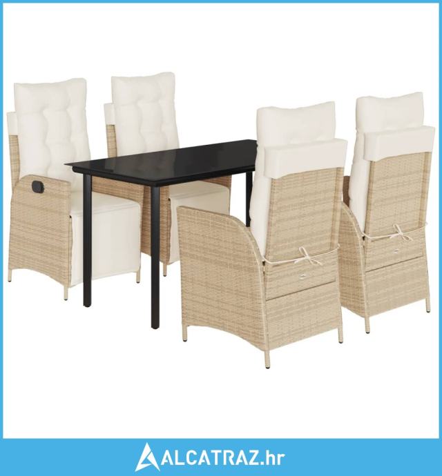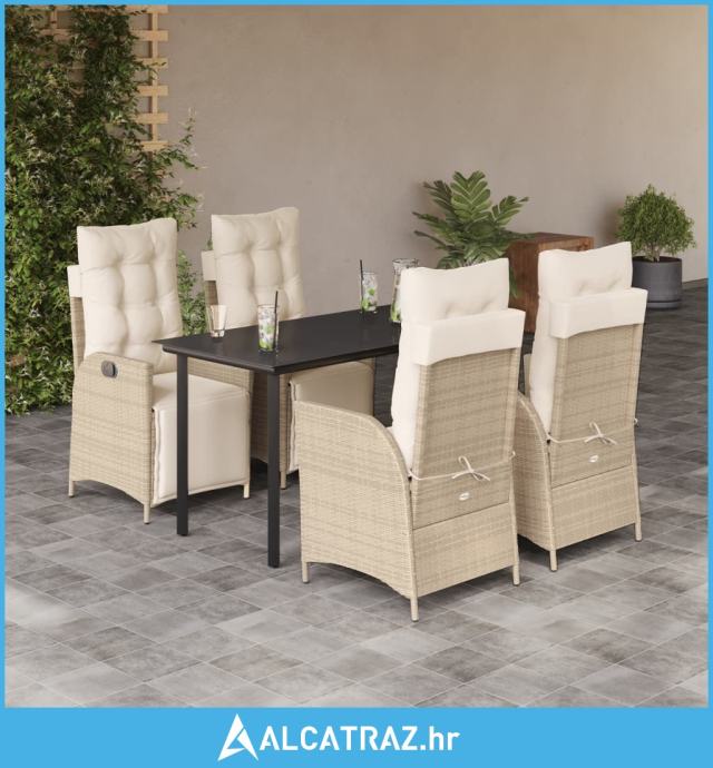 5-dijelni vrtni blagovaonski set od poliratana s jastucima bež - NOVO