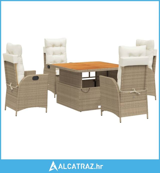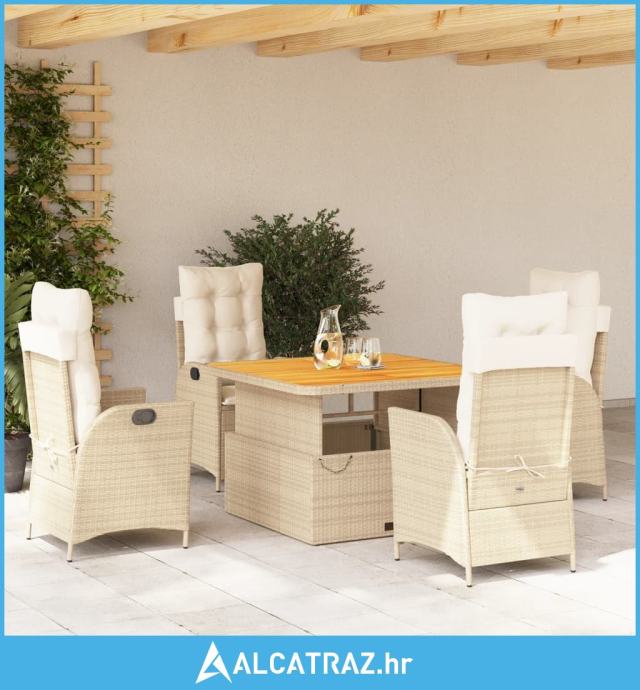 5-dijelni vrtni blagovaonski set od poliratana s jastucima bež - NOVO