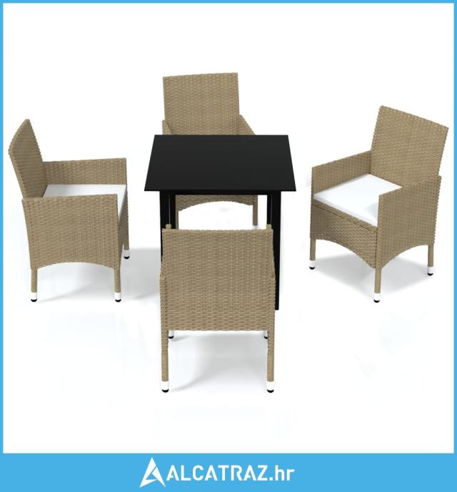 5-dijelni vrtni blagovaonski set od poliratana s jastucima bež - NOVO