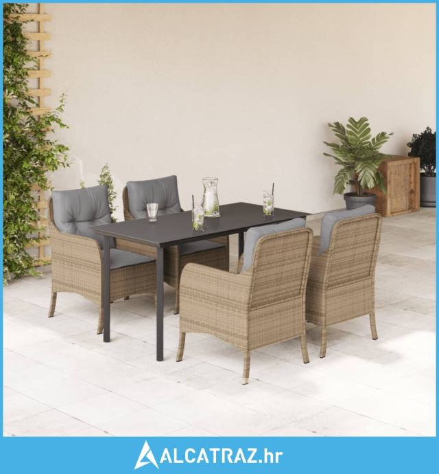 5-dijelni vrtni blagovaonski set od poliratana s jastucima bež - NOVO