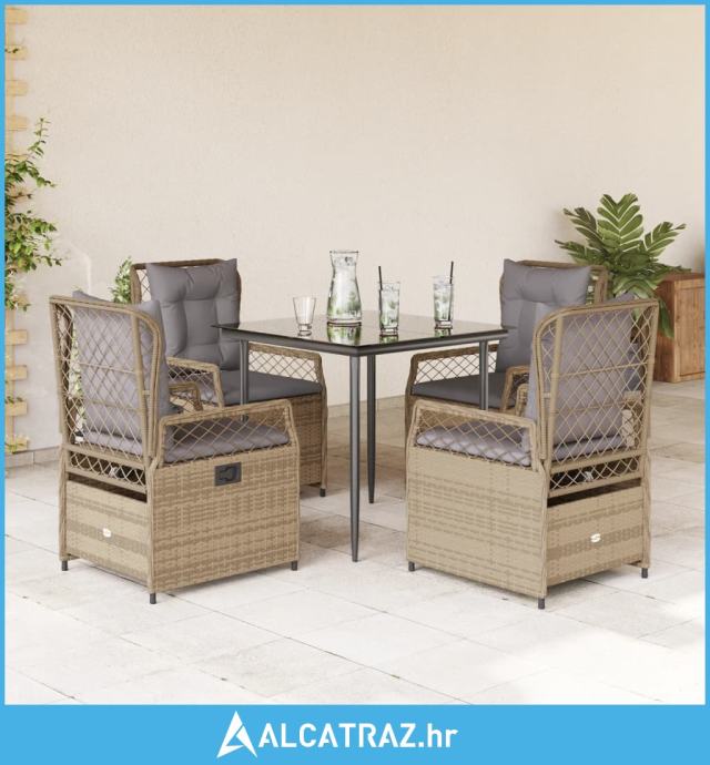 5-dijelni vrtni blagovaonski set od poliratana s jastucima bež - NOVO
