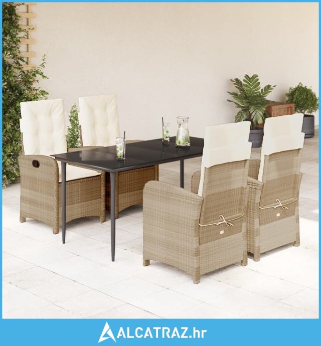 5-dijelni vrtni blagovaonski set od poliratana s jastucima bež - NOVO