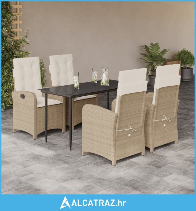 5-dijelni vrtni blagovaonski set od poliratana s jastucima bež - NOVO