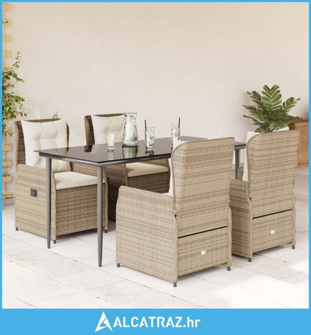 5-dijelni vrtni blagovaonski set od poliratana s jastucima bež - NOVO