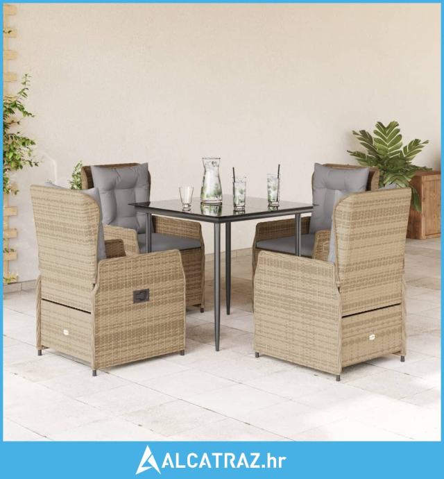 5-dijelni vrtni blagovaonski set od poliratana s jastucima bež - NOVO