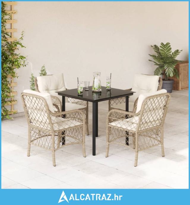 5-dijelni vrtni blagovaonski set od poliratana s jastucima bež - NOVO
