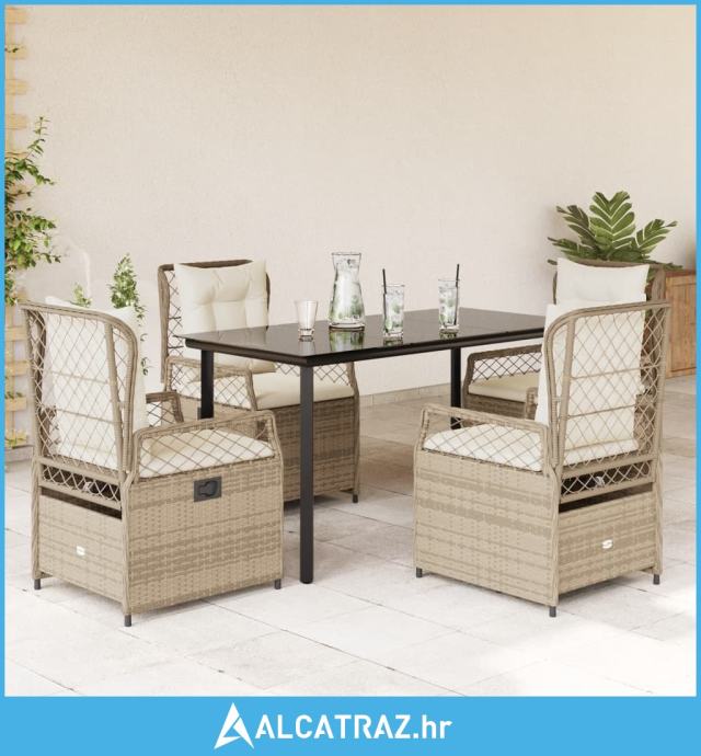 5-dijelni vrtni blagovaonski set od poliratana s jastucima bež - NOVO
