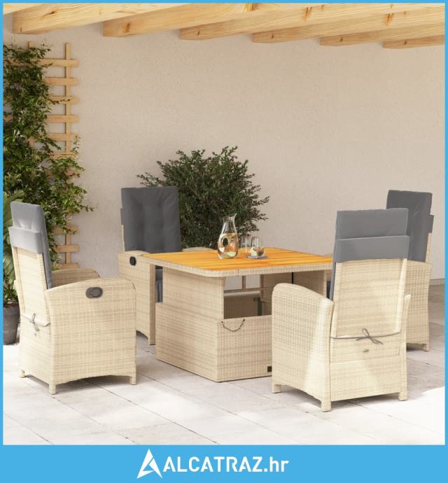5-dijelni vrtni blagovaonski set od poliratana s jastucima bež - NOVO