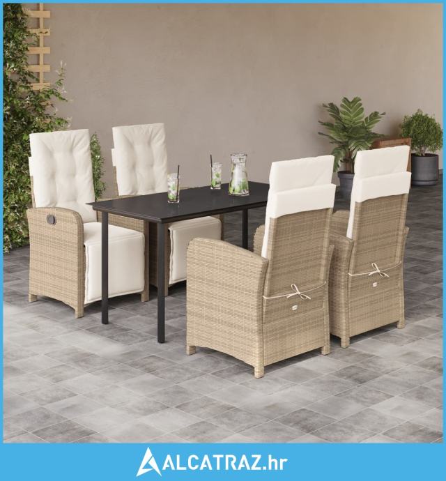 5-dijelni vrtni blagovaonski set od poliratana s jastucima bež - NOVO