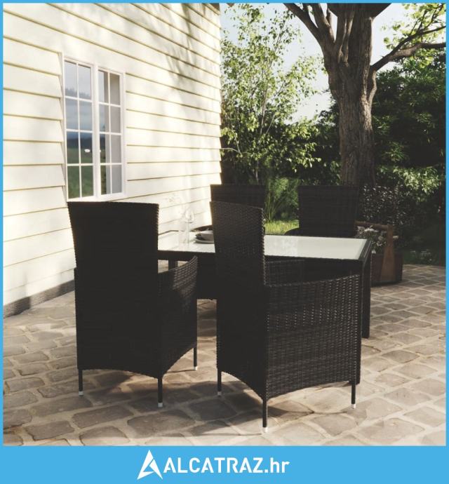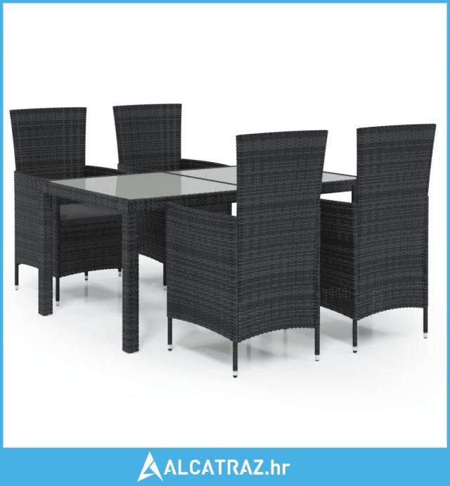 5-dijelni vrtni blagovaonski set od poliratana s jastucima crni - NOVO