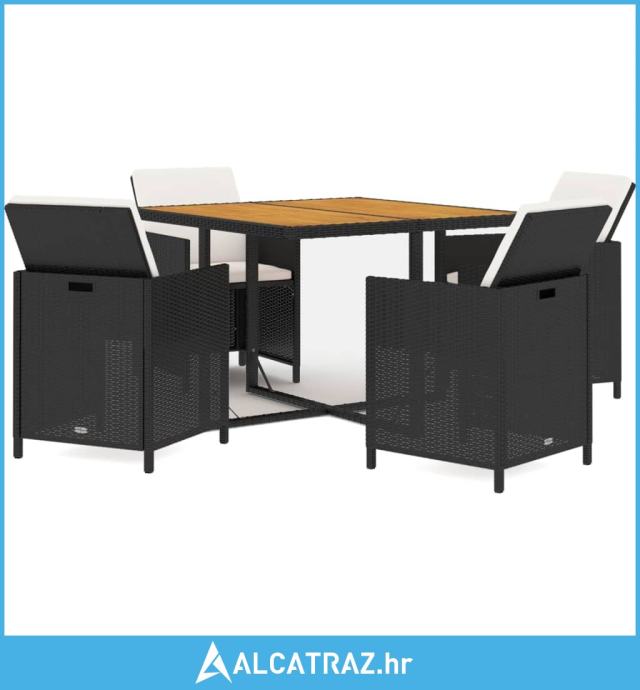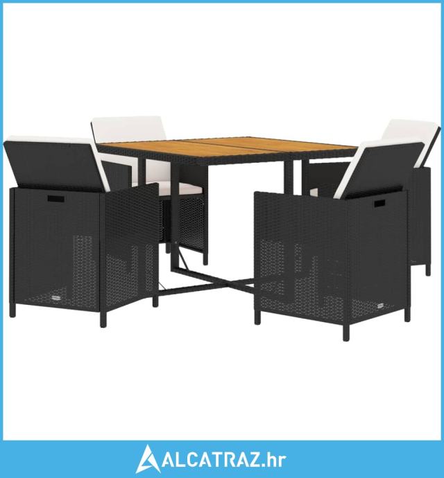 5-dijelni vrtni blagovaonski set od poliratana s jastucima crni - NOVO
