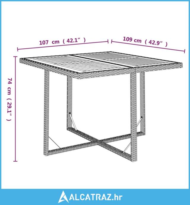 - Dimenzije stola: 109 x 107 x 74 cm (D x Š x V)