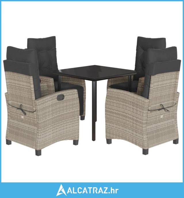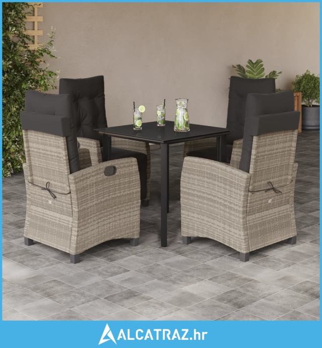5-dijelni vrtni blagovaonski set od poliratana s jastucima sivi - NOVO