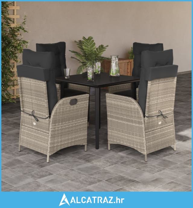 5-dijelni vrtni blagovaonski set od poliratana s jastucima sivi - NOVO