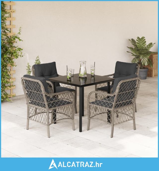 5-dijelni vrtni blagovaonski set od poliratana s jastucima sivi - NOVO
