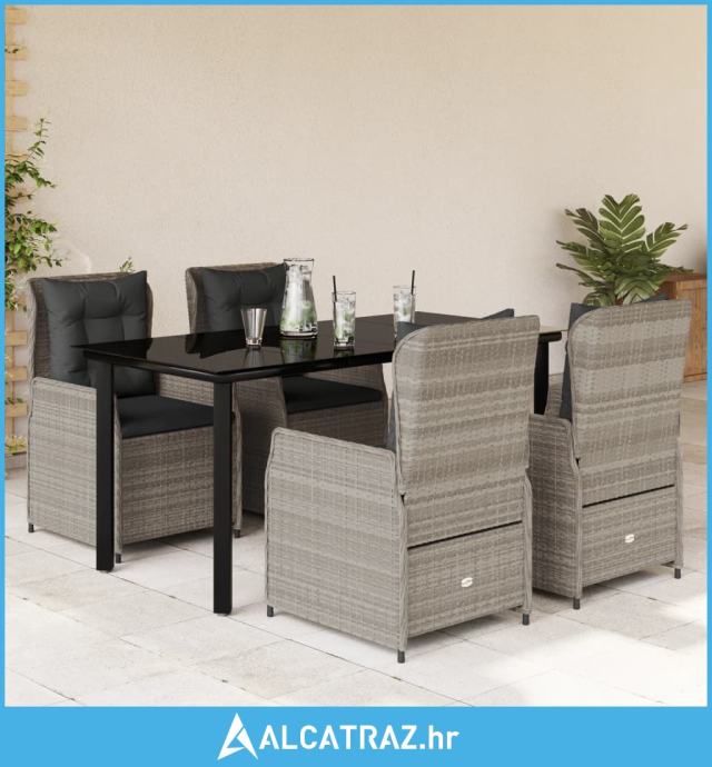 5-dijelni vrtni blagovaonski set od poliratana s jastucima sivi - NOVO