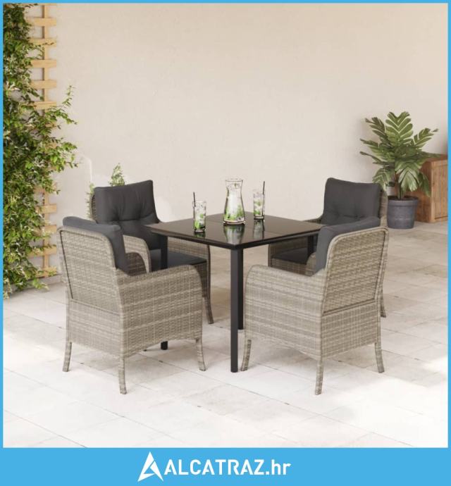 5-dijelni vrtni blagovaonski set od poliratana s jastucima sivi - NOVO