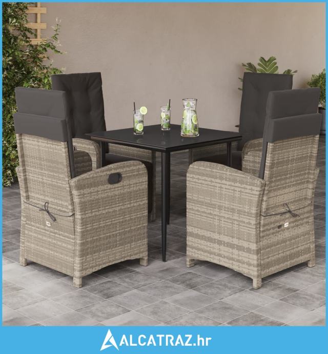 5-dijelni vrtni blagovaonski set od poliratana s jastucima sivi - NOVO