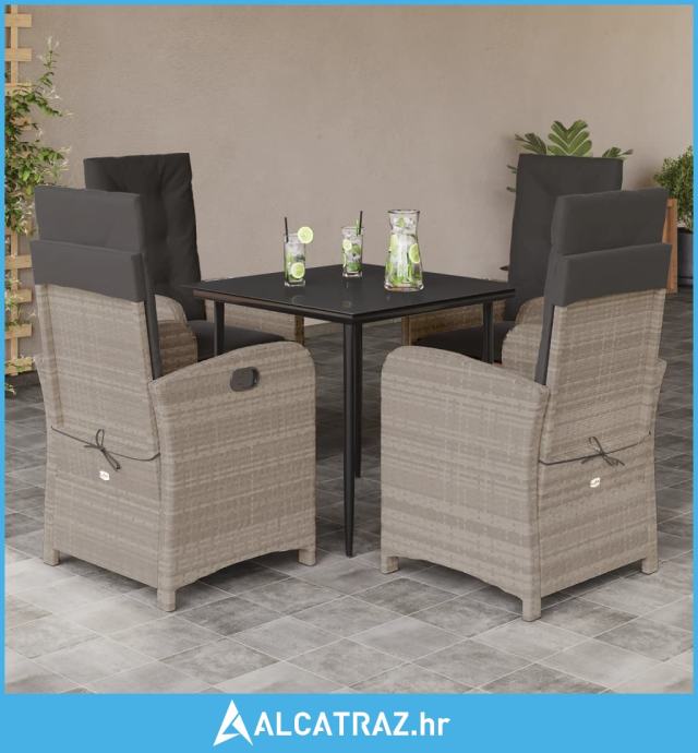 5-dijelni vrtni blagovaonski set od poliratana s jastucima sivi - NOVO