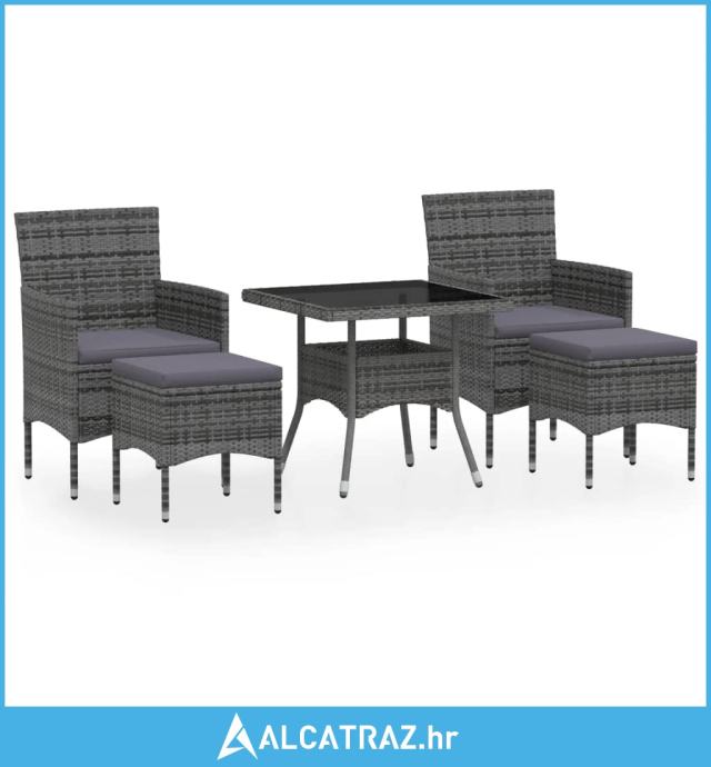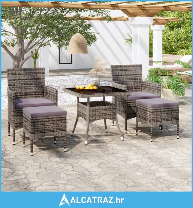 5-dijelni vrtni blagovaonski set od poliratana i stakla sivi - NOVO