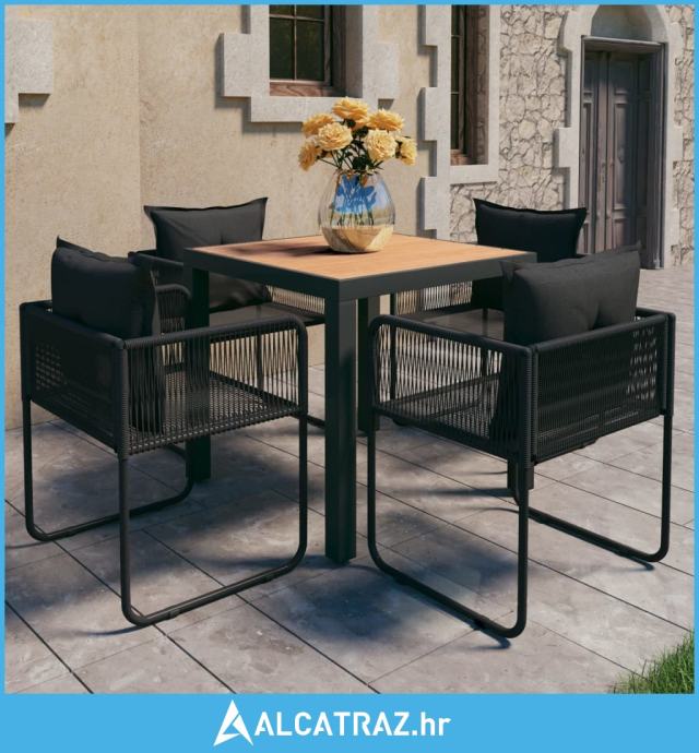5-dijelni vrtni blagovaonski set od PVC ratana crno-smeđi - NOVO