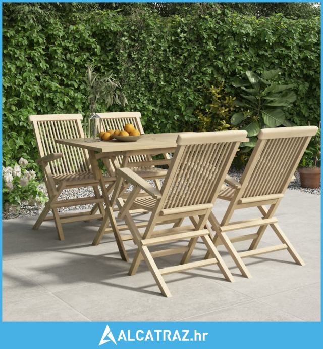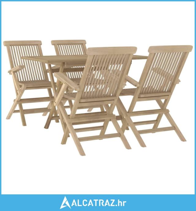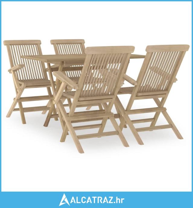 5-dijelni vrtni blagovaonski set sivi od masivne tikovine - NOVO