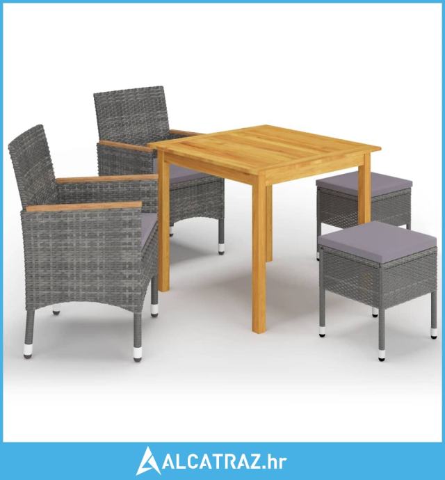 - Materijal: PE (polietilen) ratan, čelik obložen prahom, masivno bagremovo drvo s uljnim premazom