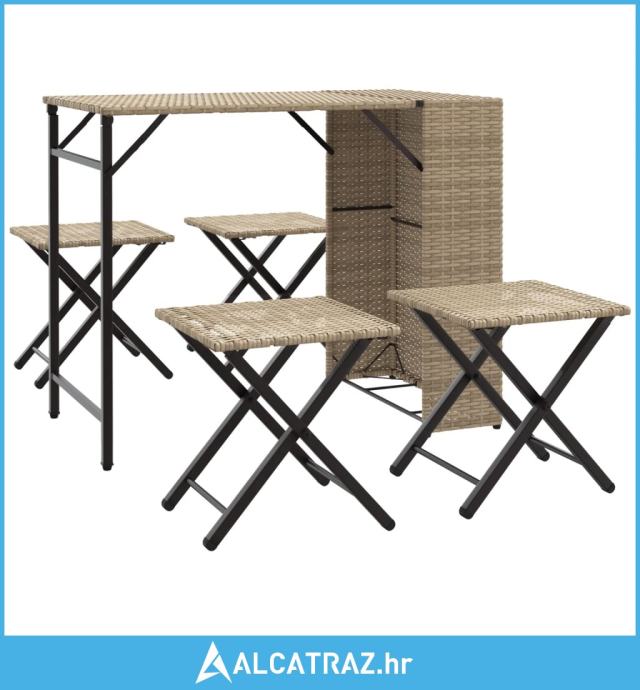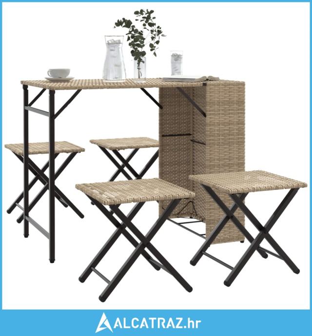 5-dijelni vrtni blagovaonski set sklopivi bež od poliratana - NOVO