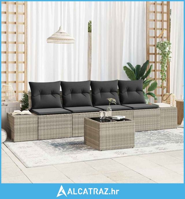 5-dijelni vrtni kauč set s jastučićima svijetlo sivi poliratan - NOVO