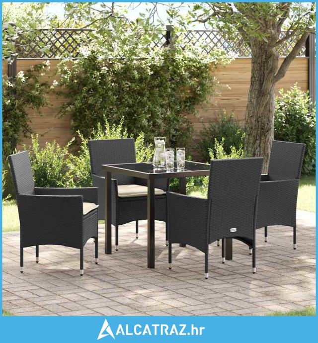 5-dijelni vrtni set s jastučićima crni poly ratan, Crni vrtni stol 80x