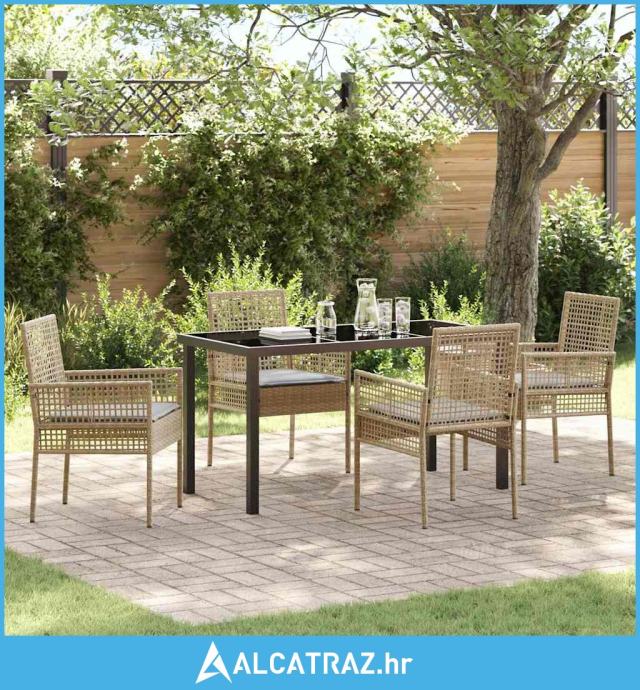 5-dijelni vrtni set za obedovanje s jastučićima - Bež poliratan - NOVO
