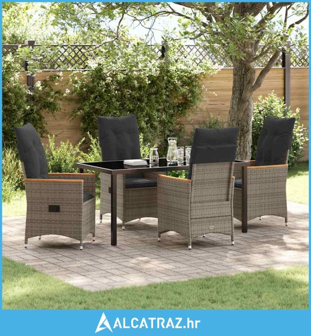 5-dijelni vrtni set za obedovanje s jastučićima u sivoj poli ratan - N