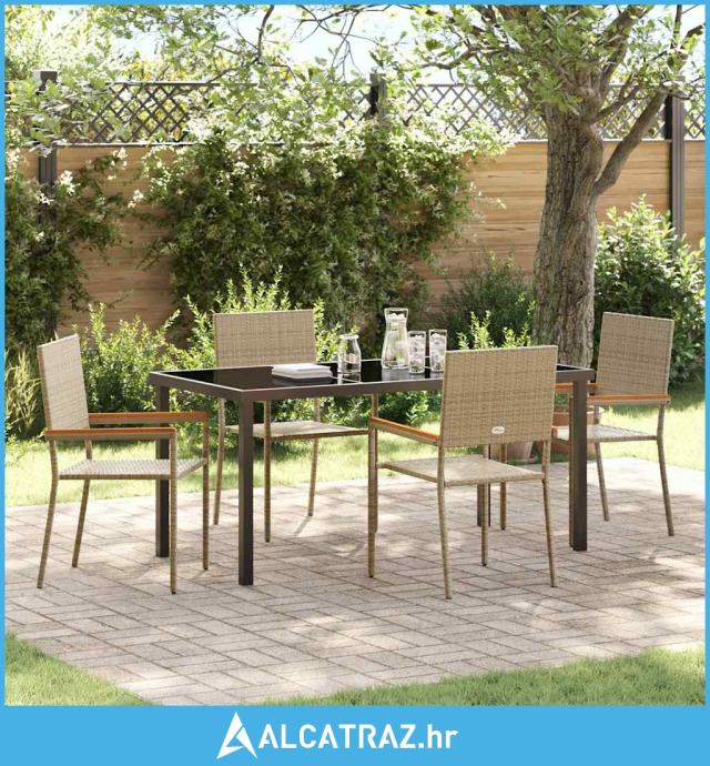 Ovaj 5-dijelni vrtni trpezarijski set spaja moderni stil s praktičnošću. Savršen je za obroke i opuštanje vani. Sa pravokutnim stolom i četiri udobne stolice, nudi ugodnu atmosferu za obroke ili neformalne susrete, idealno za tvoj balkon ili patio.