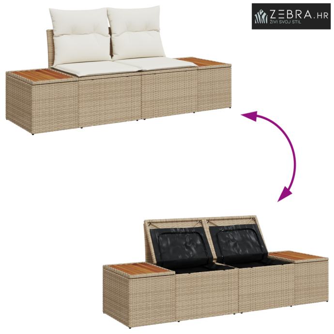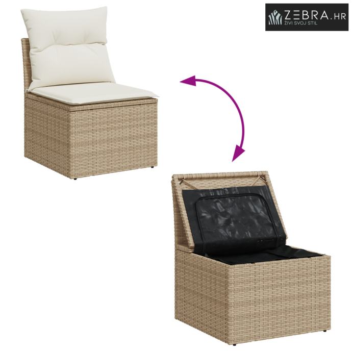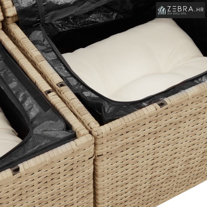 Praktično skladištenje Ugrađeni spremnici u bočnim i središnjim sofama imaju vodootporne vreće. Savršeni su za čuvanje jastučića, deka ili drugih sitnica od kiše. S puno prostora za tvoje stvari, moći ćeš održavati svoj vanjski prostor urednim i organiziranim.