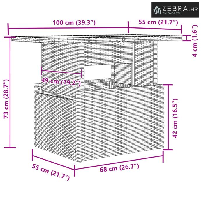 Sveukupne dimenzije: 100 x 55 x 73 cm (D x Š x V)