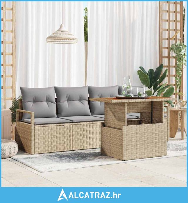 5 Komadni Vrtni Sofa Set s Jastucima Bež Poli Ratan Akacija - NOVO